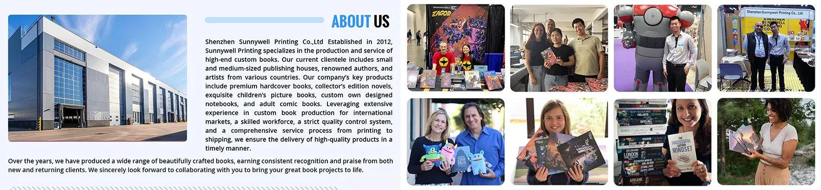 Sunywell Printing là nhà cung cấp xưởng sản xuất sách có kinh nghiệm, chúng tôi đang làm việc với nhiều nhà xuất bản và tác giả có đánh giá tốt, bạn cũng có thể tìm thấy chúng tôi trên Alibaba- http://sunnywellprint.en.alibaba.com
